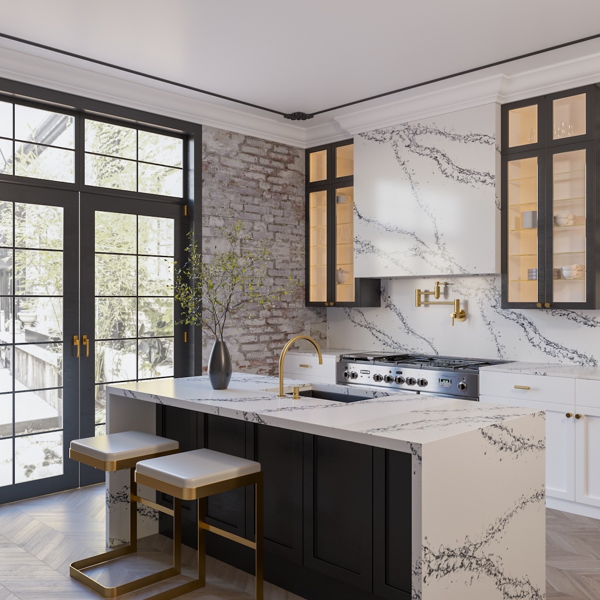 A curated collection of high-quality quartz surfaces, proudly manufactured in the United States.