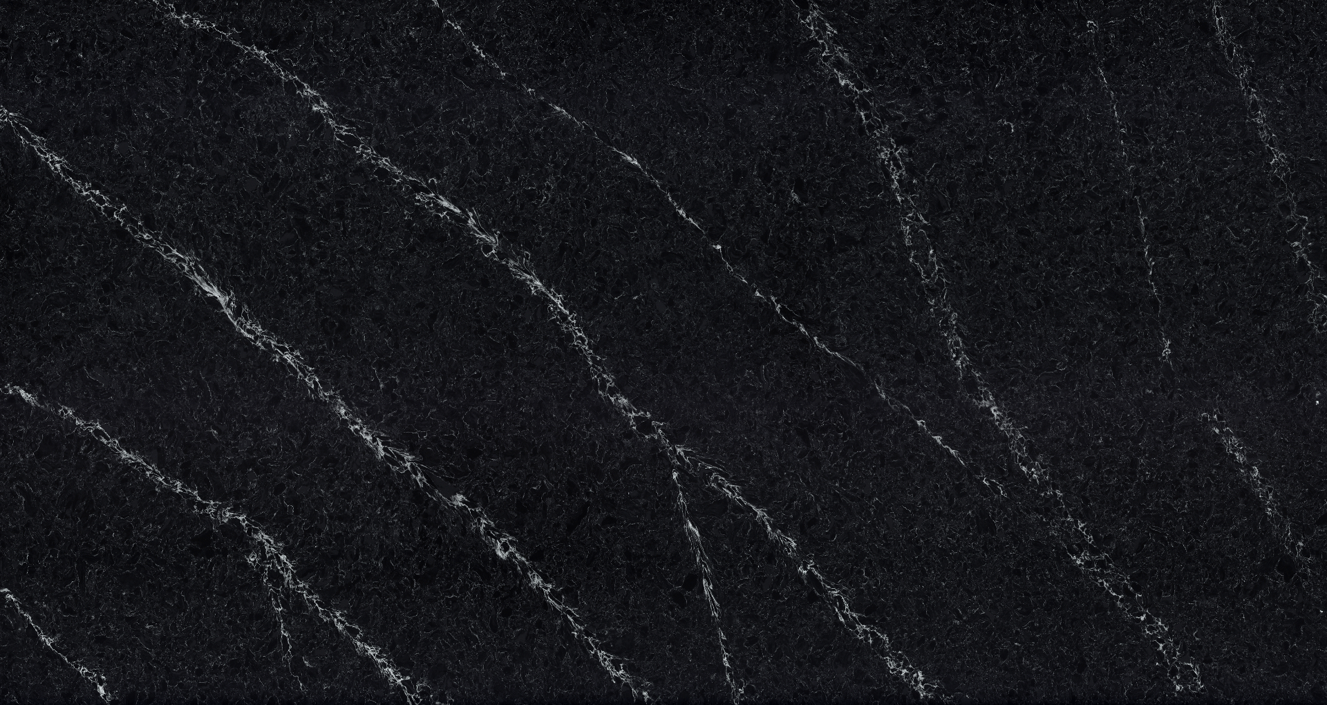 Black Lasso features a bold and sophisticated aesthetic, defined by a deep black base that exudes elegance and modernity. Delicate white veining sweeps diagonally across the surface, creating a striking contrast that mimics the natural beauty of marble. The veins vary in thickness and pattern, adding depth and visual interest without overwhelming the sleek, dark background. Ideal for contemporary interiors, this quartz is perfect for countertops, backsplashes, and feature walls where a dramatic yet refined statement is desired.